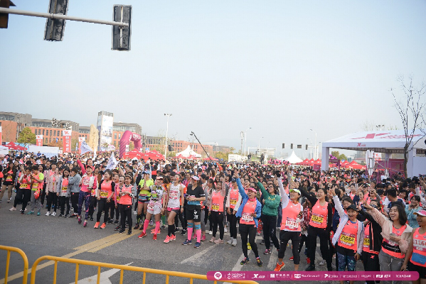 今年賽事現(xiàn)場最大的亮點在于,取消了開賽儀式,僅保留鳴槍一項流程。主會場起點區(qū)域沒有了大型噴繪的主席臺,取而代之的是小巧簡約的發(fā)令臺。上午7點,不間斷的熱身音樂響徹整個甜蜜小鎮(zhèn),運動員們在進入賽道集結后,配合著音樂,跟隨著健身教練的指引一起熱身。上午8點30分,鳴槍嘉賓們準時登臺鳴槍,全體3000多名跑者一起沖出起點門,化作一片粉紅色的海洋,向著終點奔去。“取消開賽儀式對跑者來說是非常貼心的一項舉措,讓我們在進入賽道之后依然能夠繼續(xù)熱身,時間一到準時開跑,整個參賽流程也更加流暢了。”參賽選手在賽事現(xiàn)場直言道,簡化起跑前的儀式流程,對于跑者來說是一種更好的參賽體驗。