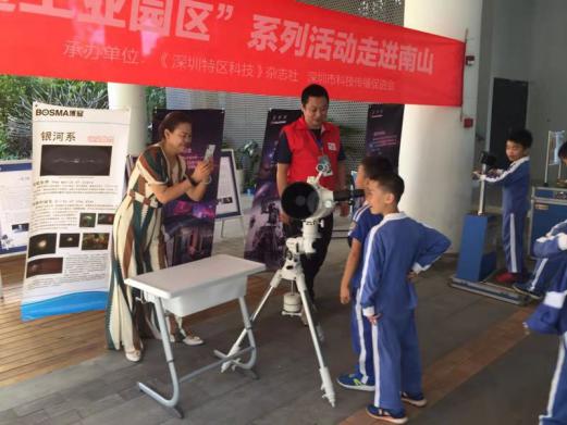 此外,深圳優(yōu)之陽科技有限公司的“一對一遠(yuǎn)程”在線教學(xué)項目給同學(xué)們配備“貼身名師”,隨時給同學(xué)們排憂解惑,深受同學(xué)歡迎;深圳諾必達(dá)節(jié)能環(huán)保有限公司的智能機器人能嗨聊、講故事、陪伴學(xué)習(xí)、搜索,還能作為溝通父母的橋梁,搖身變成同學(xué)們的良師益友,吸引大批同學(xué)前來互動體驗;中廣和(深圳)科技有限公司給同學(xué)們開展實用技能公益培訓(xùn),給同學(xué)們帶來一頓豐富的技能盛宴;深圳市鵬城光學(xué)望遠(yuǎn)鏡有限公司則帶同學(xué)們揭秘太空......