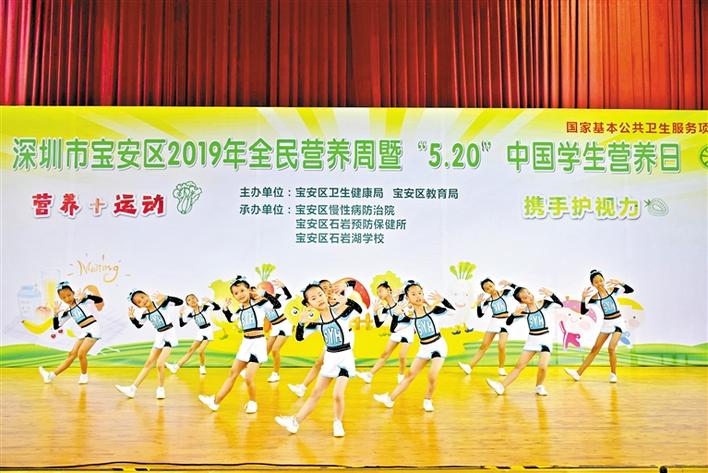寶安日報5月21日訊 你每天運(yùn)動夠60分鐘了嗎?每天都有吃蔬菜水果嗎?如今,已有越來越多的人重視營養(yǎng)、運(yùn)動與人體健康的關(guān)系,每年的5月20日是中國學(xué)生營養(yǎng)日,今年的主題是“營養(yǎng)+運(yùn)動,攜手護(hù)視力”。5月20日下午,寶安區(qū)2019年全民營養(yǎng)周暨“5·20”中國學(xué)生營養(yǎng)日在石巖湖學(xué)校舉行。