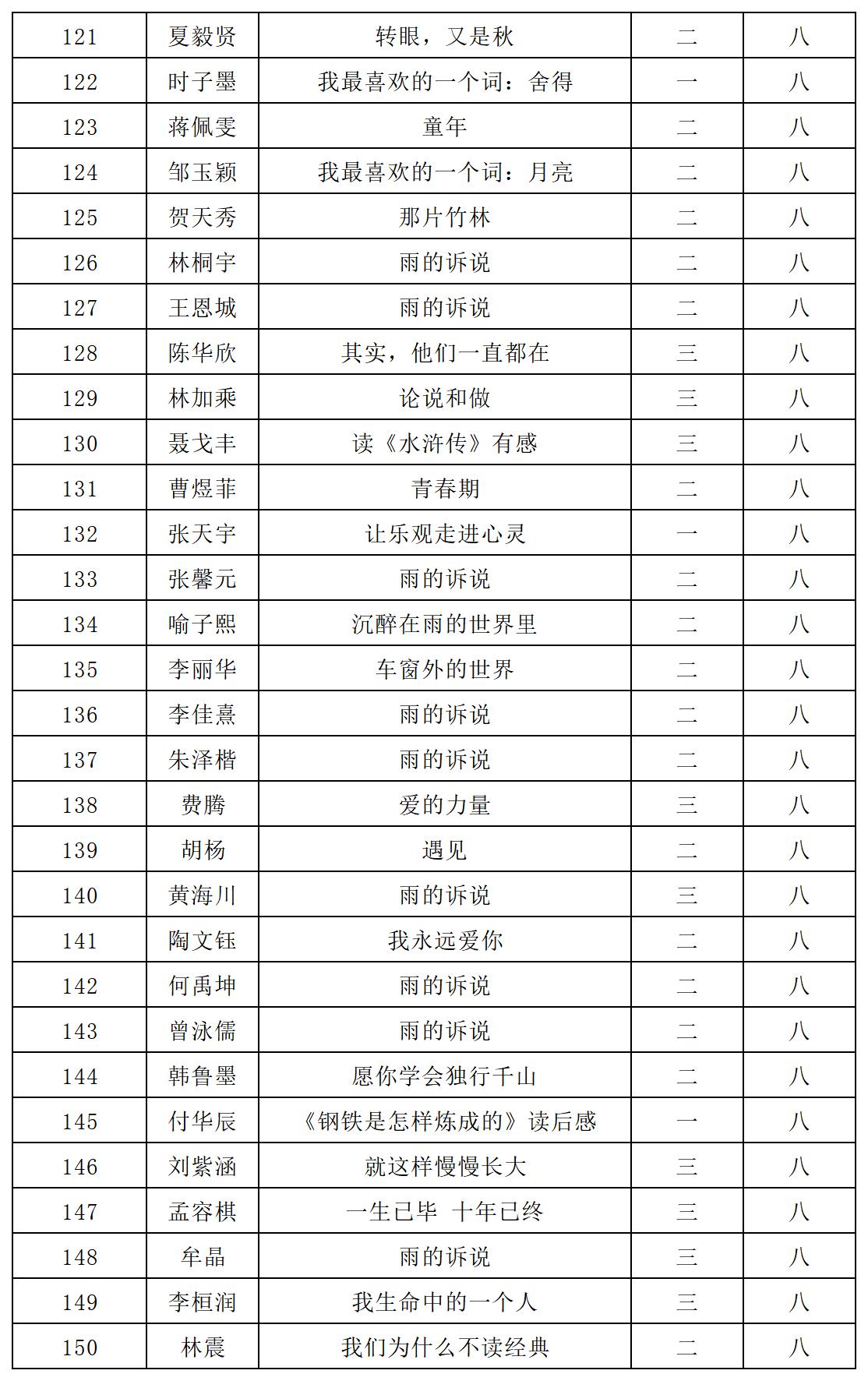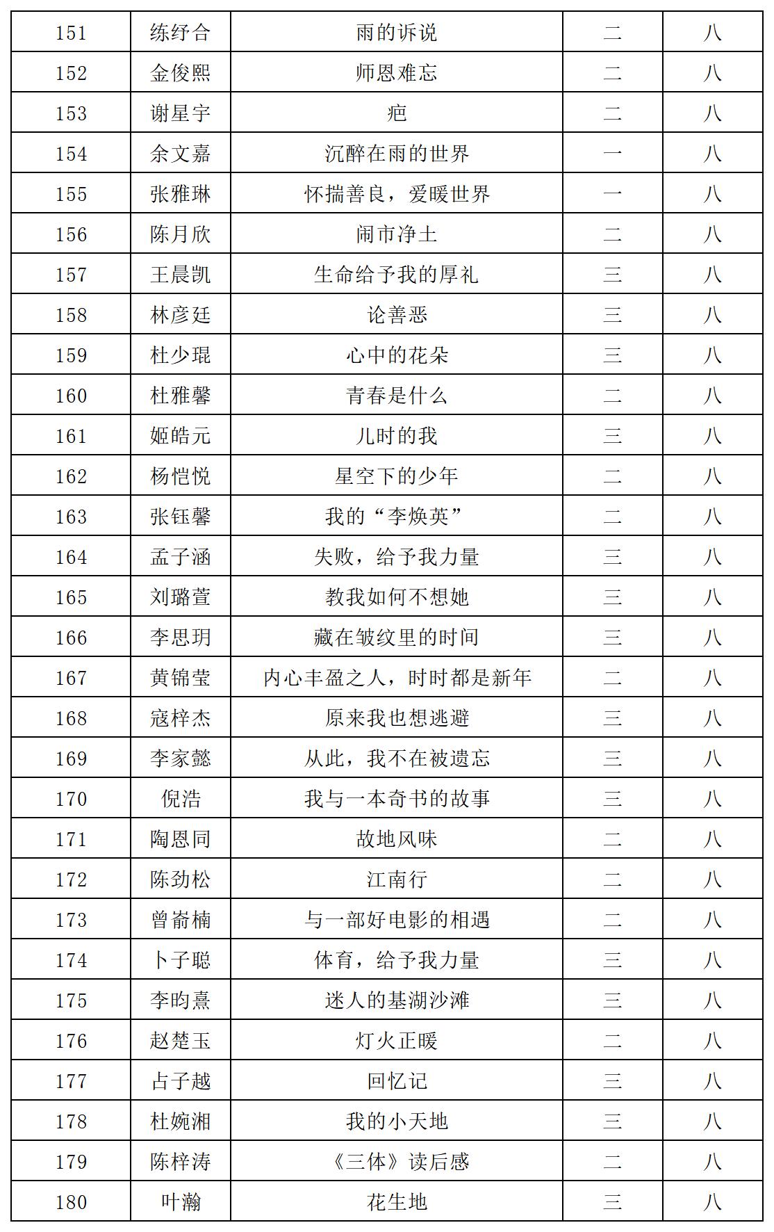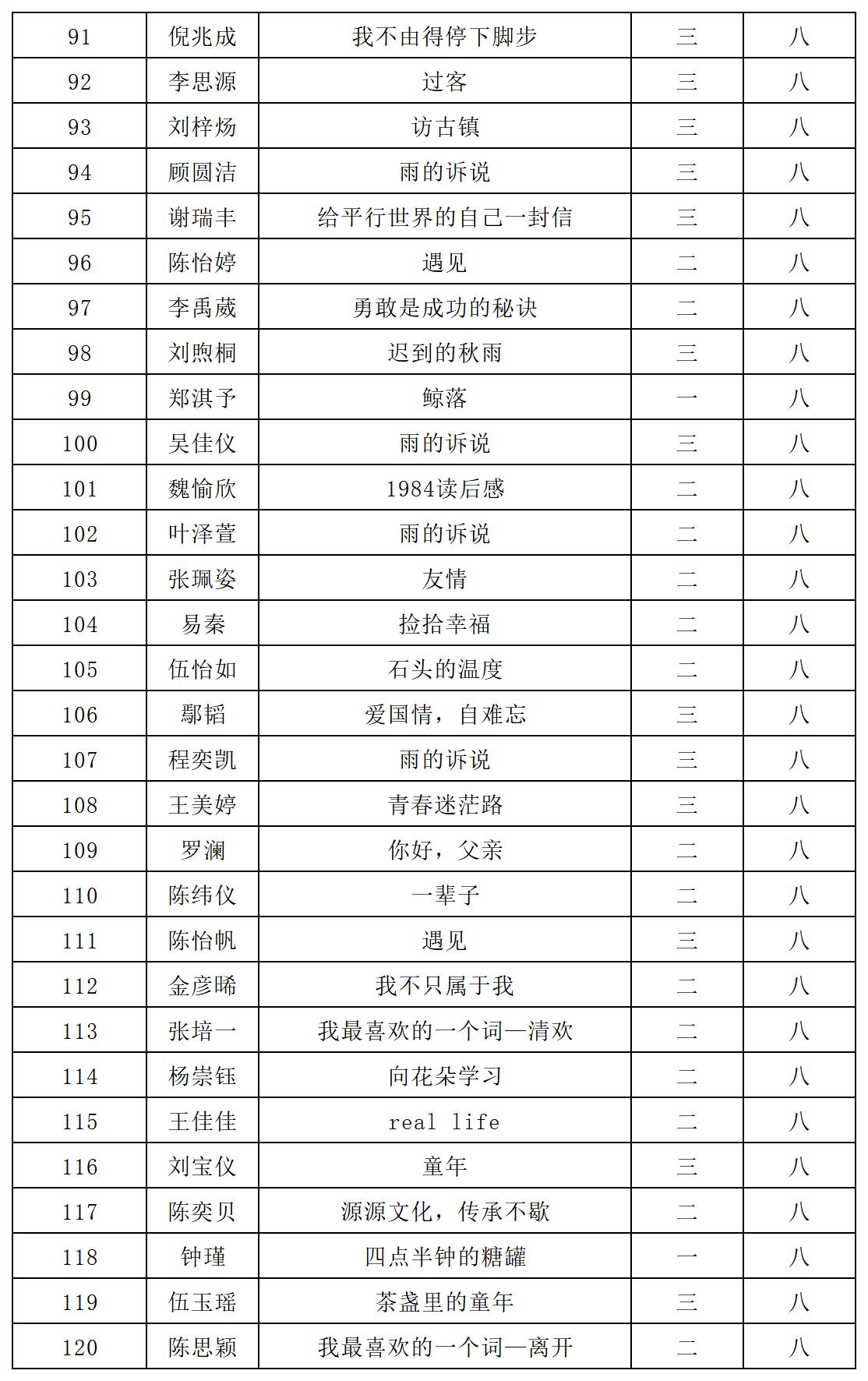 自2021年1月,活動(dòng)征稿啟動(dòng)以來(lái),獲得了深圳市廣大中小學(xué)生、教師、文學(xué)愛(ài)好者的熱烈響應(yīng)積極參與,吸引了深圳百余所學(xué)校的上萬(wàn)人關(guān)注報(bào)名?,F(xiàn)公布北師大南山附屬學(xué)校中學(xué)部晉級(jí)復(fù)賽名單如下: