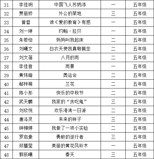自2021年1月,活動(dòng)征稿啟動(dòng)以來(lái),獲得了深圳市廣大中小學(xué)生、教師、文學(xué)愛(ài)好者的熱烈響應(yīng)積極參與,吸引了深圳百余所學(xué)校的上萬(wàn)人關(guān)注報(bào)名。現(xiàn)公布南山區(qū)荔香學(xué)校晉級(jí)復(fù)賽名單如下: