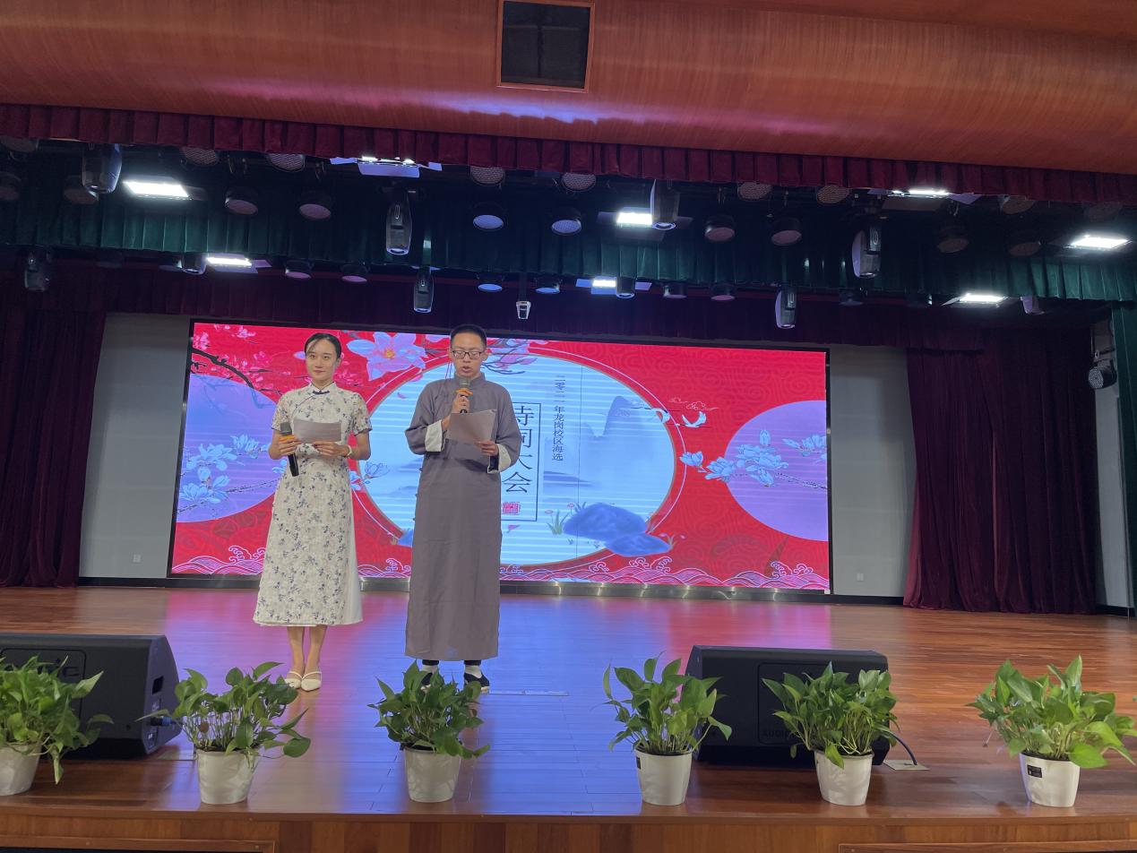 在仙田外國語學校星空劇場,高年級組的19名同學帶來了一場精彩的詩歌朗誦盛宴,同學們或組合吟誦《春江花月夜》、或獨自吟唱《滿江紅》,時而高昂,時而抒情,充分展示了仙田學子扎實的古典詩詞功底。