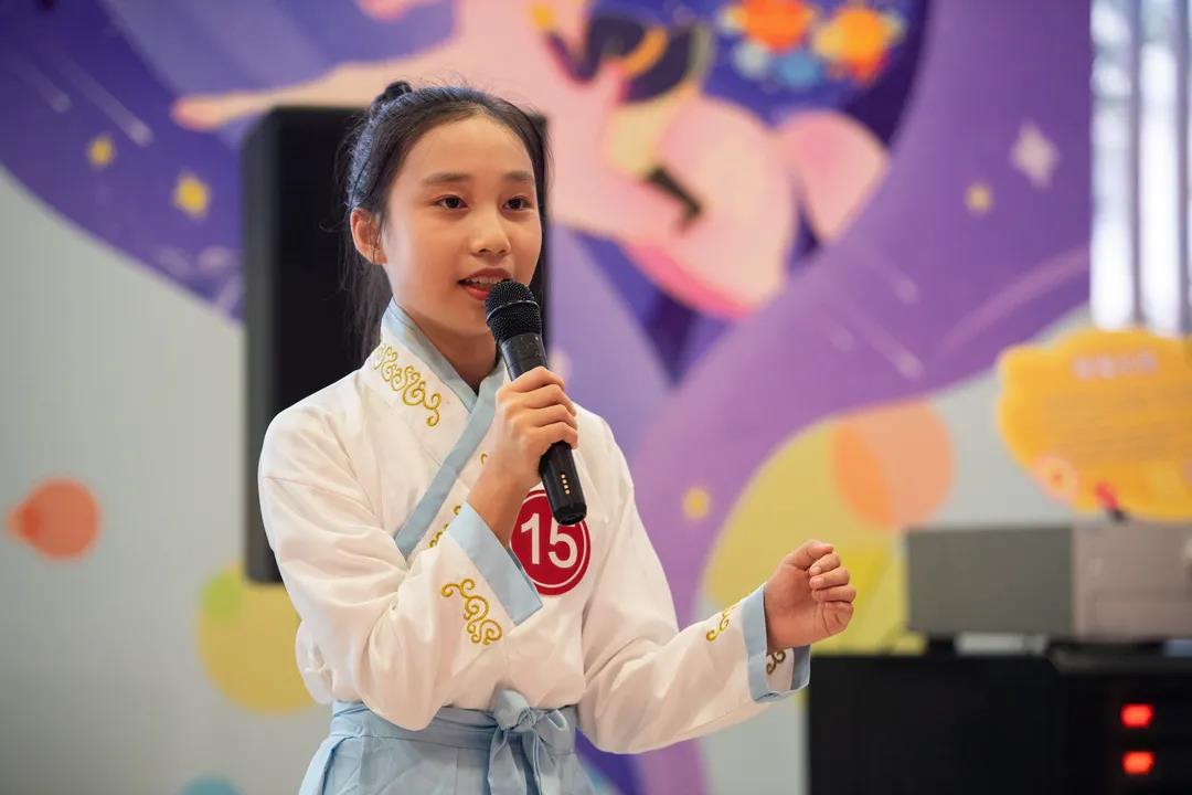 在甘坑社區(qū)廣場,現(xiàn)場早早搭起了舞臺,來自甘李學校的17名優(yōu)秀古詩詞愛好者躊躇滿志、躍躍欲試,甘坑社區(qū)黨委副書記魏阿妮親自擔任活動主持人,選手們輪番上場,為評委及社區(qū)居民呈現(xiàn)了一場精彩的文化活動。