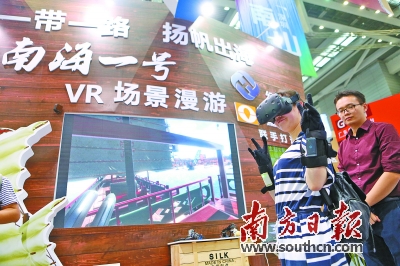 游客體驗(yàn)“南海一號(hào)”VR場(chǎng)景漫游(南方日?qǐng)?bào)記者 魯力 攝)
