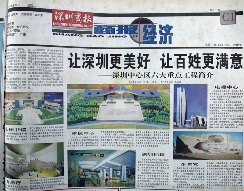1998年12月29日,深圳商報C1版介紹深圳中心區(qū)六大重點(diǎn)工程