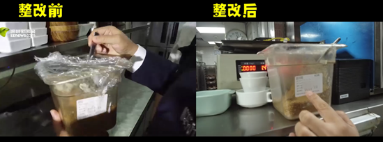 4月19日記者回訪發(fā)現(xiàn)該餐廳負(fù)責(zé)人整改態(tài)度積極,針對(duì)檢查中指出的問(wèn)題進(jìn)行了逐項(xiàng)整改,包括:后廚外專門騰出一個(gè)空間擺放食材及工具,不再占用廚房區(qū)域;生熟食已做到分開(kāi)放置;倉(cāng)庫(kù)擺放整齊有序;消毒柜溫度已可以達(dá)到90度以上;新設(shè)置一個(gè)粗加工區(qū)與烹調(diào)區(qū)隔離開(kāi);被查封的涼菜間重新進(jìn)行了問(wèn)題排查與改善。經(jīng)過(guò)轄區(qū)食藥監(jiān)管部門的復(fù)評(píng)后目前該餐廳的餐飲量化等級(jí)已恢復(fù)至B級(jí)。該餐廳負(fù)責(zé)人也向記者表示,“星期三查餐廳”不僅是檢查,還給予他們對(duì)后廚管理的手把手的指導(dǎo),提升很大,后續(xù)將繼續(xù)加強(qiáng)后廚管理,給消費(fèi)者一個(gè)安全健康的就餐環(huán)境保障。
