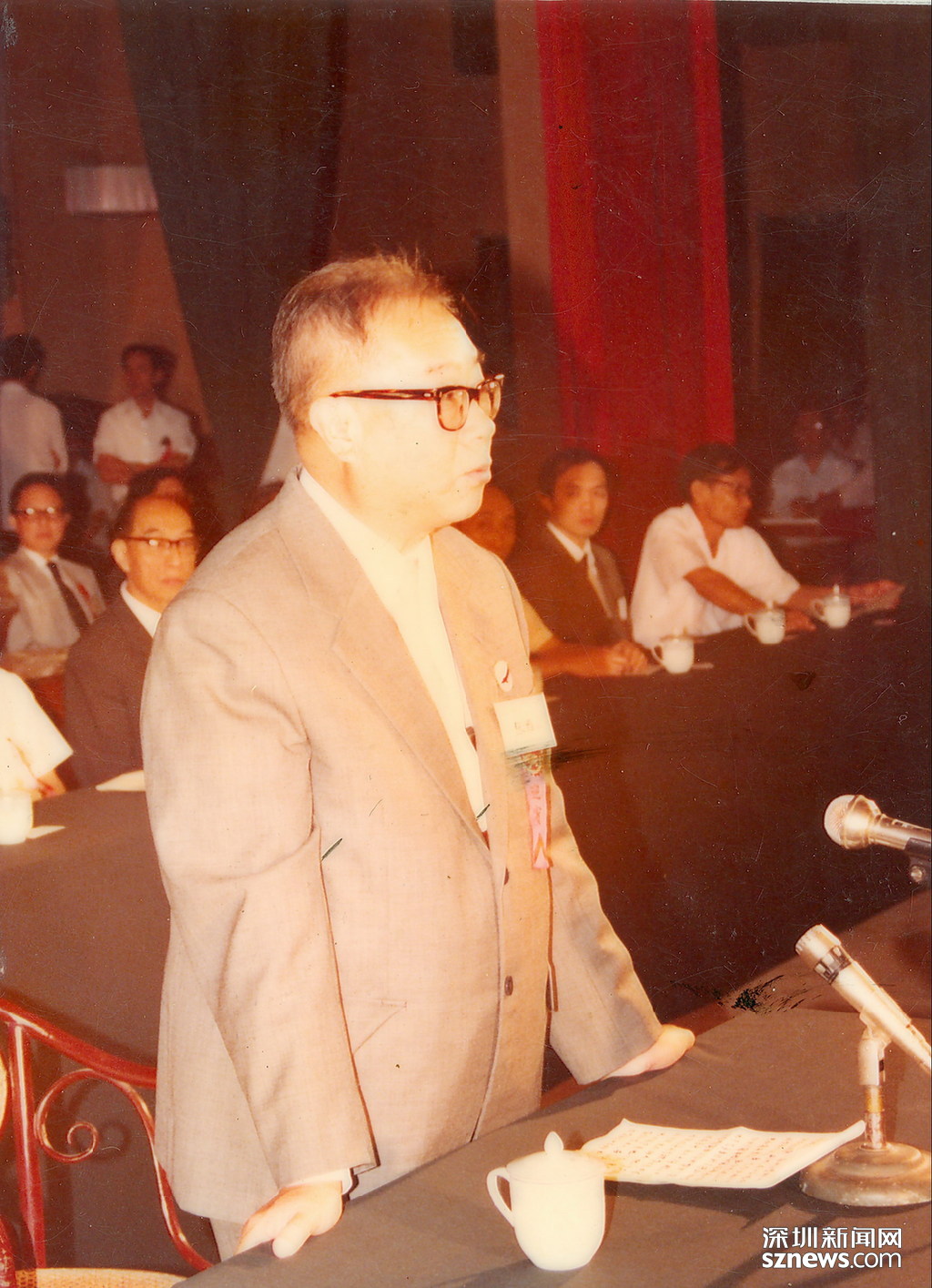 1983年9月27日,深圳大學(xué)成立暨首屆開學(xué)典禮大會(huì)在深圳戲院隆重舉行,首任校長張維在開學(xué)典禮上致辭。(資料圖片,由深圳大學(xué)提供)