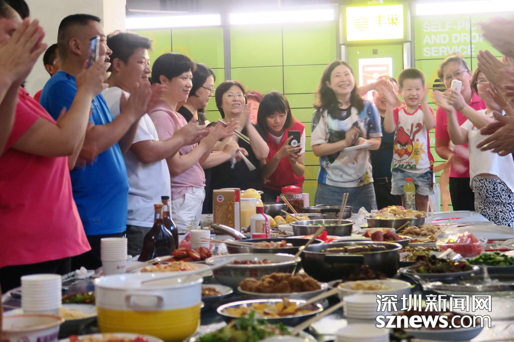 深圳新聞網(wǎng)訊 (記者 劉婷 林毓瑾 通訊員 張晉)住在鋼筋水泥森林,一墻之隔不往來,擦肩而過不搭話,這或許是城市鄰里關(guān)系的“痛點(diǎn)”,但深圳水木華庭的業(yè)主在8月11日舉辦了別開生面的“百家宴”,卻吃出濃濃的鄰里情,小編隔著屏幕都聞到了“愛的味道”…… 為慶祝水木華庭新一屆業(yè)委會(huì)的誕生,水木華庭業(yè)主微信群的群主楊莉建議11日在4棟B單元架空層,開個(gè)“百家宴”。這個(gè)主意一出來,水木華庭的業(yè)主們紛紛響應(yīng),業(yè)委會(huì)成員和業(yè)主大會(huì)籌備組成員也都紛紛表示:屆時(shí)將爭取貢獻(xiàn)一兩個(gè)拿手好菜! 于是乎,業(yè)主們分頭行動(dòng),籌備工作有條不紊地進(jìn)行。8月11日晚,水木華庭入伙15年來的首次“百家宴”如期舉行。