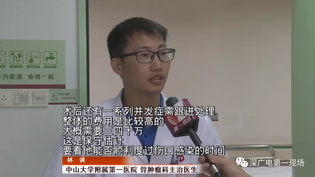 北大醫(yī)院建議他轉(zhuǎn)到廣州的腫瘤??漆t(yī)院治療,于是在各界愛心人士幫助下,蘇玉男順利地入住到廣州中山大學(xué)附屬第一醫(yī)院,經(jīng)過系列復(fù)檢,確診為骶骨腫瘤,腫瘤直徑長(zhǎng)達(dá)12厘米,需要盡快手術(shù)剝離。在這期間,一直是深圳的一位姓鄧的女士在照顧他。