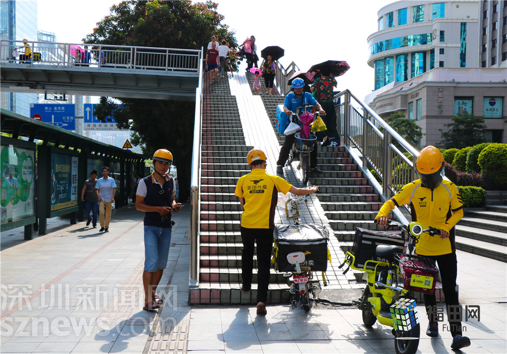 天橋上會(huì)有很多電動(dòng)車(chē)、自行車(chē)通過(guò),上下很不方便。