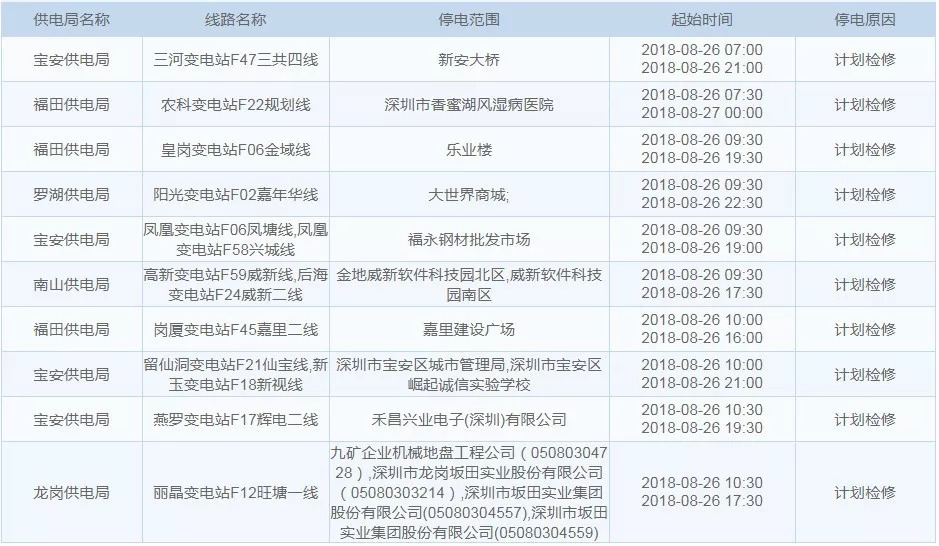 8月26日停電區(qū)域