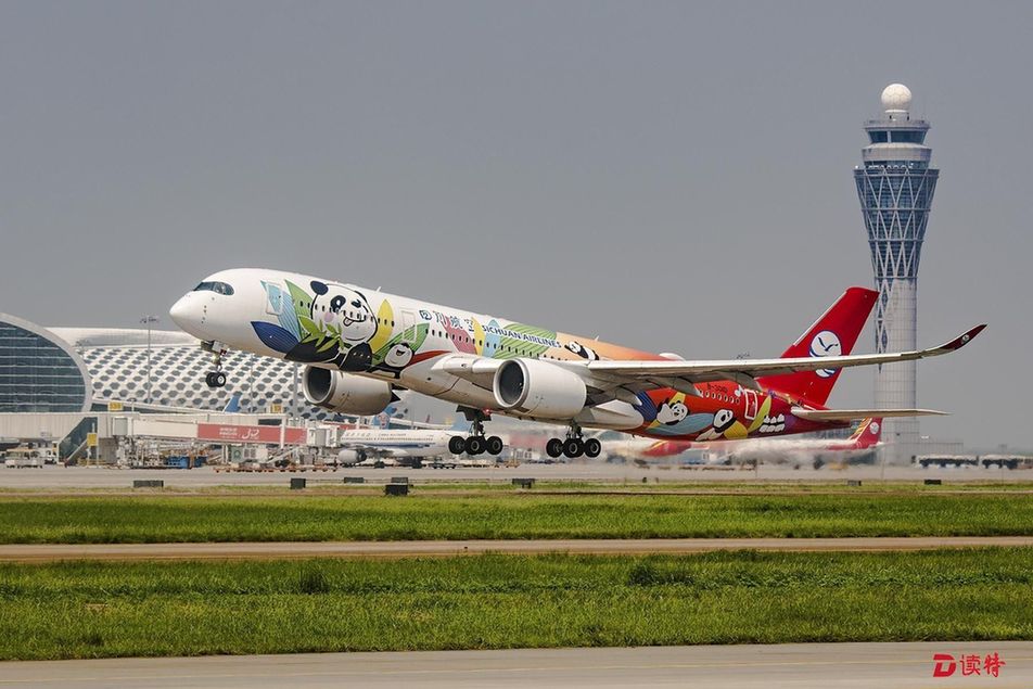 川航A350飛機首秀深圳 “熊貓彩繪”驚艷深圳機場