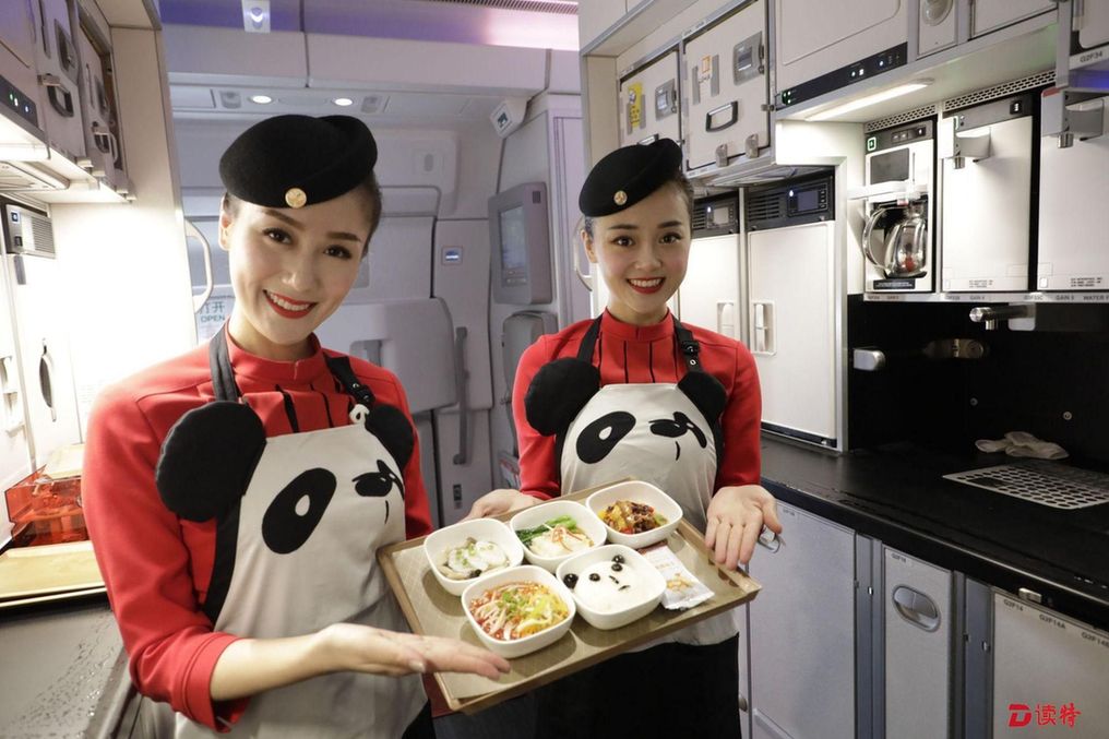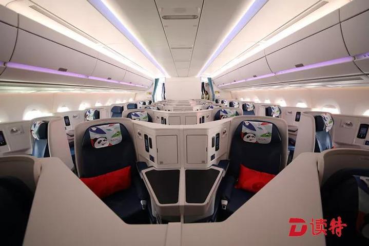 除了色彩繽紛的熊貓彩繪之外,機(jī)艙內(nèi)的熊貓元素隨處可見,仿佛把大熊貓基地搬上了天。