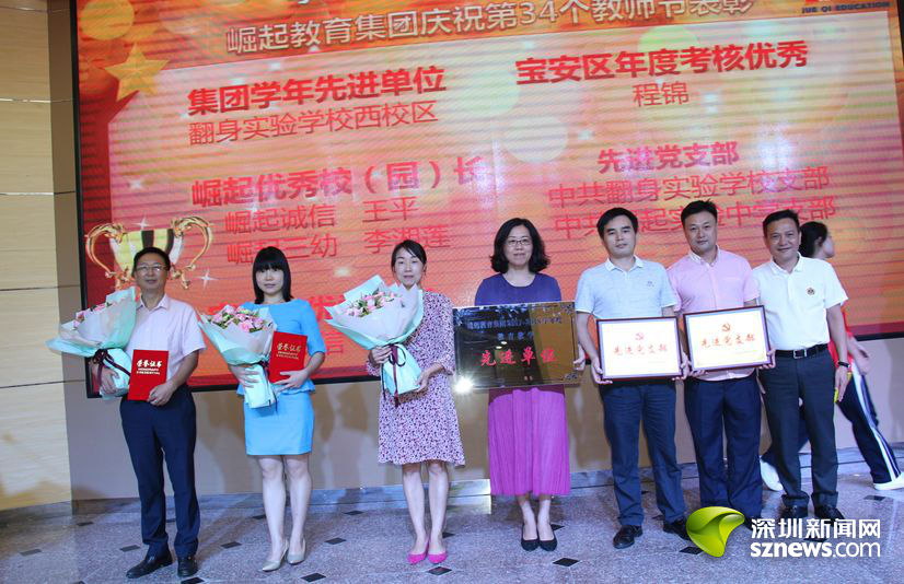 大會上,崛起教育集團對獲得集團名師金銀銅牌教師,集團學(xué)年先進單位、優(yōu)秀校園長、先進黨支部,集團學(xué)年度先進個人、優(yōu)秀黨員獎,集團“尊師重教先進單位”等百余名個人及團體進行表彰。
