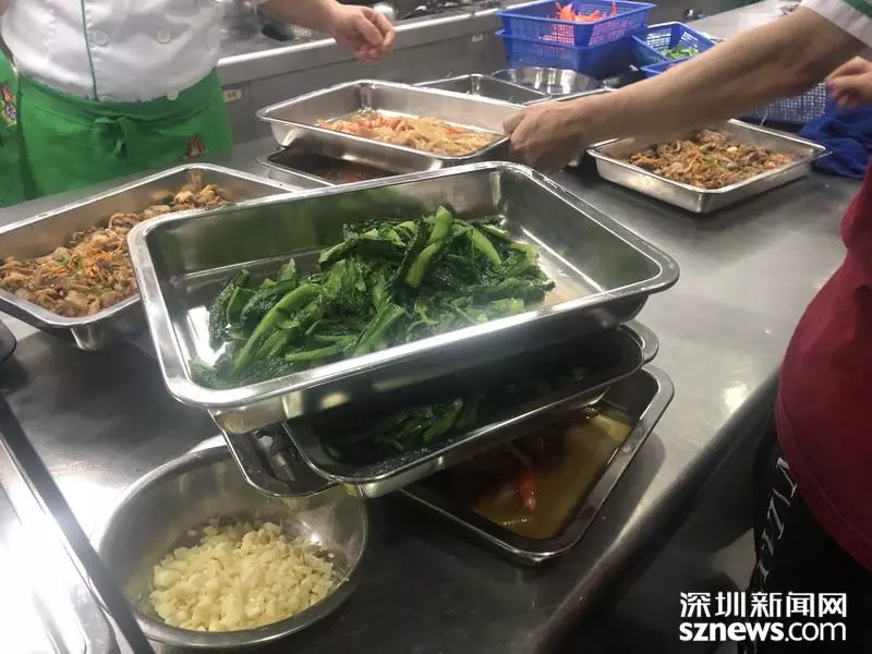 后廚做好的飯菜疊放擺放,易引起交叉污染,執(zhí)法人員責令分開擺放