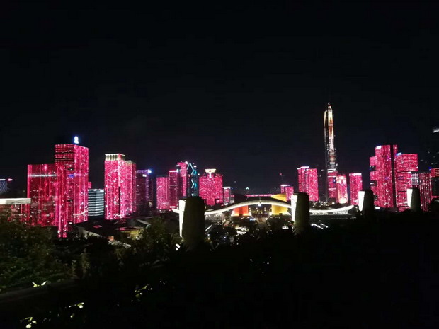 這臺別開生面的晚會,主舞臺設在市民中心廣場,舞臺后方呈現(xiàn)著深圳市精心打造的福田中心區(qū)43座樓宇燈光秀,五彩斑斕、綺麗多姿的深圳城市新夜景,與晚會現(xiàn)場舞臺融為一體,為市民和廣大觀眾呈現(xiàn)出一個迷人的“深圳之夜”。