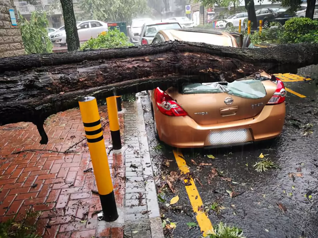 ▲ 臺(tái)風(fēng)導(dǎo)致樹木伏倒,路邊不少車輛受損 /記者金永勝攝