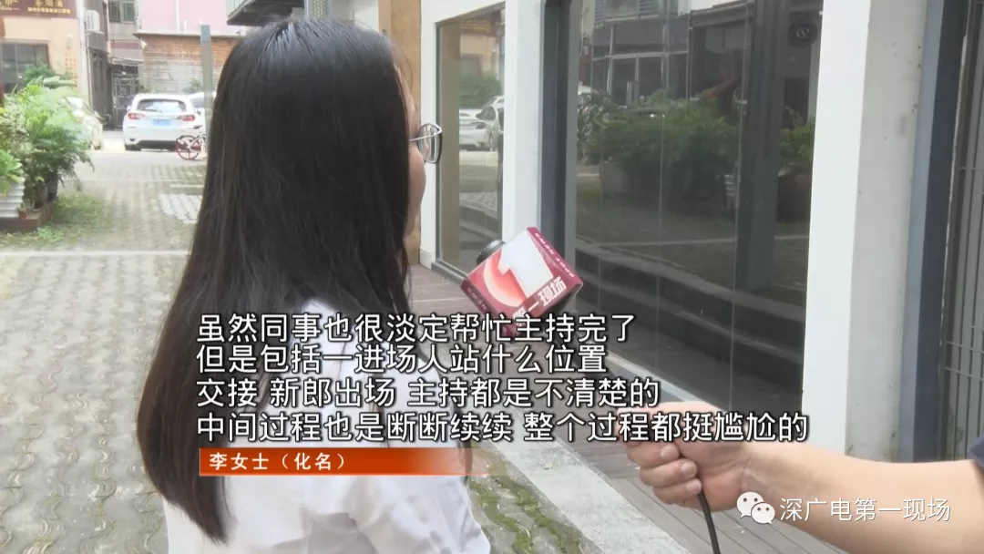 但是沒想到的是,最后司儀還是沒趕上。談到這里李女士忍不住哭了,她說這次她邀請來參加婚禮的都是摯親摯友,然而現(xiàn)在發(fā)生的一切卻讓她覺得很丟臉。