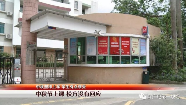 今天,記者在深圳明珠學(xué)校大門口從上午十點(diǎn)多一直等到中午十二點(diǎn),期待校方就高三學(xué)生中秋節(jié)上課的情況,予以回應(yīng)??墒牵T衛(wèi)保安多次聯(lián)系校方領(lǐng)導(dǎo),自始至終,校方都沒有人出面接受記者采訪。