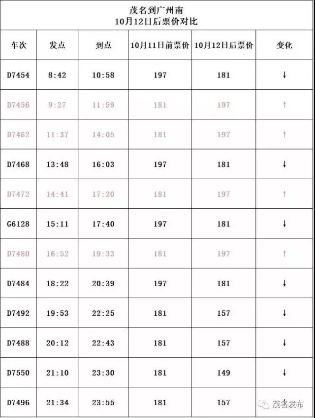 G6128(14點37分)、D7454(8點08分)、D7484次(17點48分)由原來的249元調整為228元;