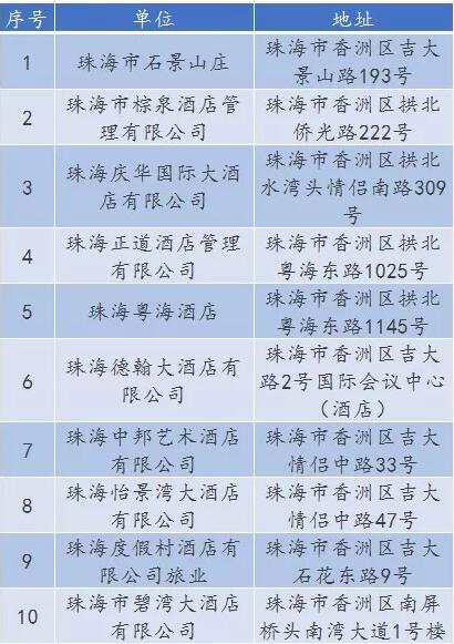 廣東省A級(jí)住宿單位名單