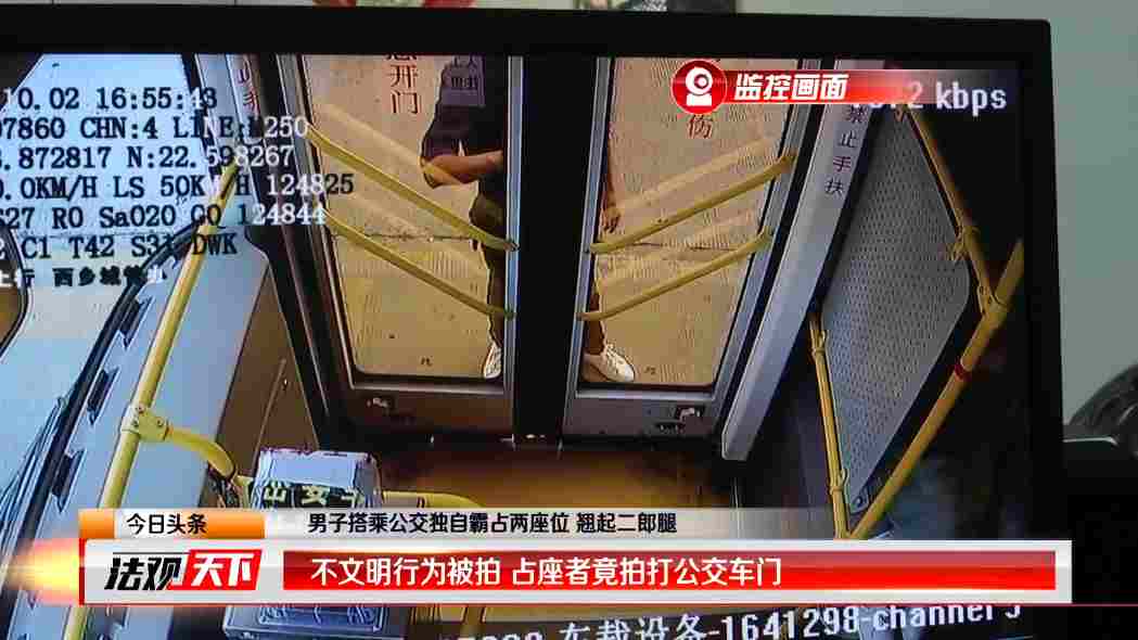 不文明行為被拍占座者竟拍打公交車門