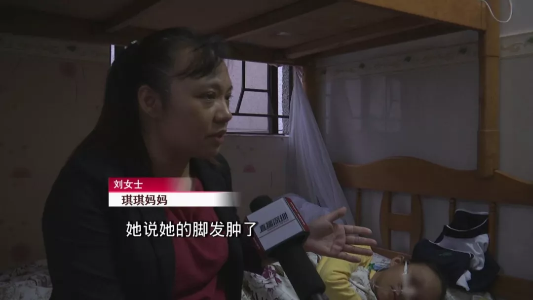 可今年9月份,正在商場(chǎng)超市做促銷(xiāo)員的劉女士,突然接到女兒琪琪的電話,說(shuō)自己走不動(dòng)了,而且腳也發(fā)腫了,崩得緊緊根本走不了,要?jiǎng)⑴咳ソ铀?/p>