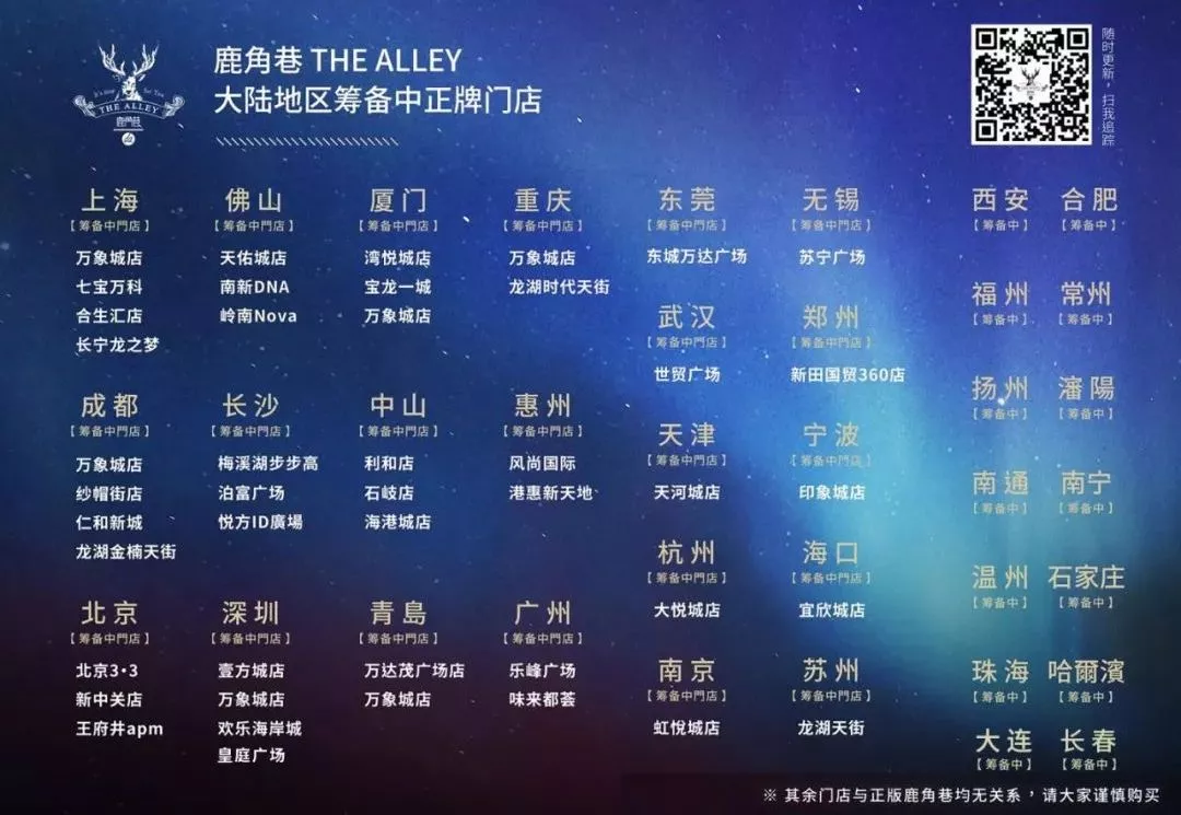 據(jù)大陸地區(qū)品牌總經(jīng)理譚力說(shuō):如果你在街邊小攤看到鹿角巷,那肯定是假的。因?yàn)槲覀冎蝗腭v大型商場(chǎng)。