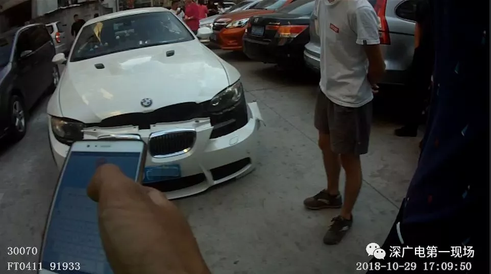 10月29日下午5點23分左右,福田交警接到報警,在梅林華海公寓34號停車路段,有一起四車被連撞的交通事故,而肇事的小車司機卻逃離了現(xiàn)場!接警后執(zhí)勤民警很快趕到現(xiàn)場。