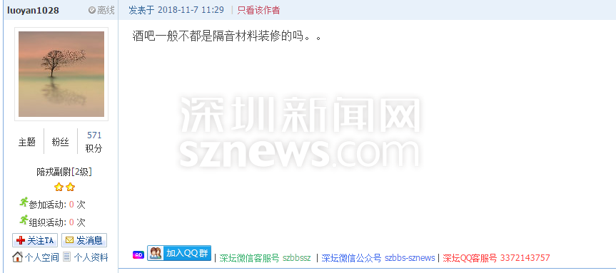 “酒吧一般不都是隔音材料裝修的嗎?”網(wǎng)友“l(fā)uoyan1028”在回復(fù)該帖文時(shí)提出了自己的疑問(wèn)。眾所周知,高速公路兩旁,常常設(shè)有隔音板以減少噪音污染,降低對(duì)周圍居民的影響。那么作為以營(yíng)利為目的,并向公眾開(kāi)放、消費(fèi)者自?shī)首詷?lè)的歌舞、游藝的酒吧場(chǎng)所,裝修時(shí)使用隔音材料就更是必不可少了。只是,這所米蘭國(guó)際酒吧真的安裝了隔音板嗎?