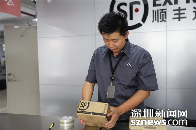 收派員對(duì)包裹進(jìn)行打包