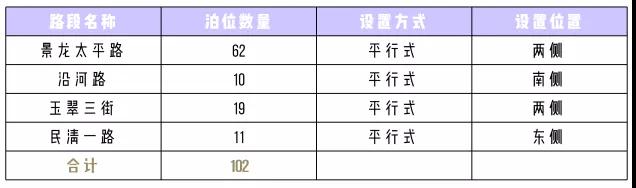 其中,桂月路擬設(shè)置泊位60個(gè),樟閣路設(shè)置39個(gè),榮福路設(shè)置112個(gè),溢佳路設(shè)置59個(gè),新丹路設(shè)置100個(gè),福慶路設(shè)置27個(gè),翠幽路設(shè)置79個(gè),景龍?zhí)铰吩O(shè)置62個(gè),沿河路設(shè)置10個(gè),玉翠三街設(shè)置19個(gè),民清一路設(shè)置11個(gè),華天路設(shè)置47個(gè),永樂(lè)路設(shè)置21個(gè),簡(jiǎn)上路設(shè)置63個(gè),上芬小學(xué)路設(shè)置18個(gè),新牛路設(shè)置21個(gè),油聯(lián)路設(shè)置18個(gè),黎光工業(yè)路設(shè)置22個(gè)。總共788個(gè)“宜停車”泊位。