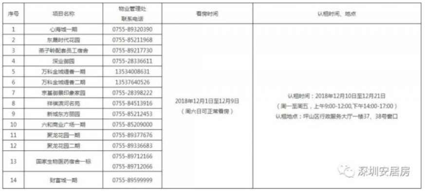 (三)統(tǒng)籌考慮本次配租房源實際供應數(shù)量和在庫輪候人需求情況,坪山在庫輪候家庭和企(事)業(yè)單位申請時間至2018年11月30日。如仍有房源需求的個人和企(事)業(yè)單位請在規(guī)定時間內(nèi)遞交申請資料。
