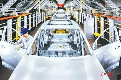 如今,武漢GDP超萬億。圖為工人們在汽車生產(chǎn)流水線上工作長江日報(bào)記者周超 攝