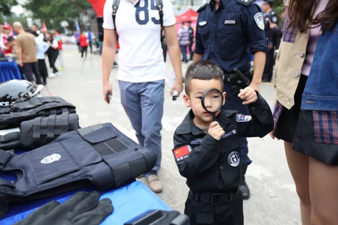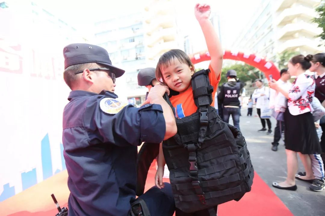 防暴盾牌、槍支警械威武霸氣,隊列棍術(shù)、擒拿格斗輪番上陣。很多人興致勃勃地穿戴警用裝備,頭戴鋼盔、身穿警服,登上反恐敞篷車拍照留念,圓夢警察夢想。