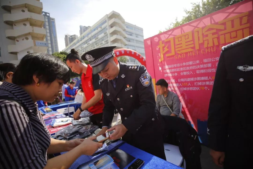 深圳市公安局指揮部有獎(jiǎng)舉報(bào)中心聯(lián)合福田公安分局開展“有獎(jiǎng)舉報(bào)”宣傳活動(dòng),民警現(xiàn)場發(fā)放宣傳資料,積極發(fā)動(dòng)群眾踴躍舉報(bào),不斷提高群眾對掃黑除惡專項(xiàng)斗爭的知曉度,市民咨詢不斷,形成了對黑惡勢力“零容忍”和人人喊打的良好氛圍。