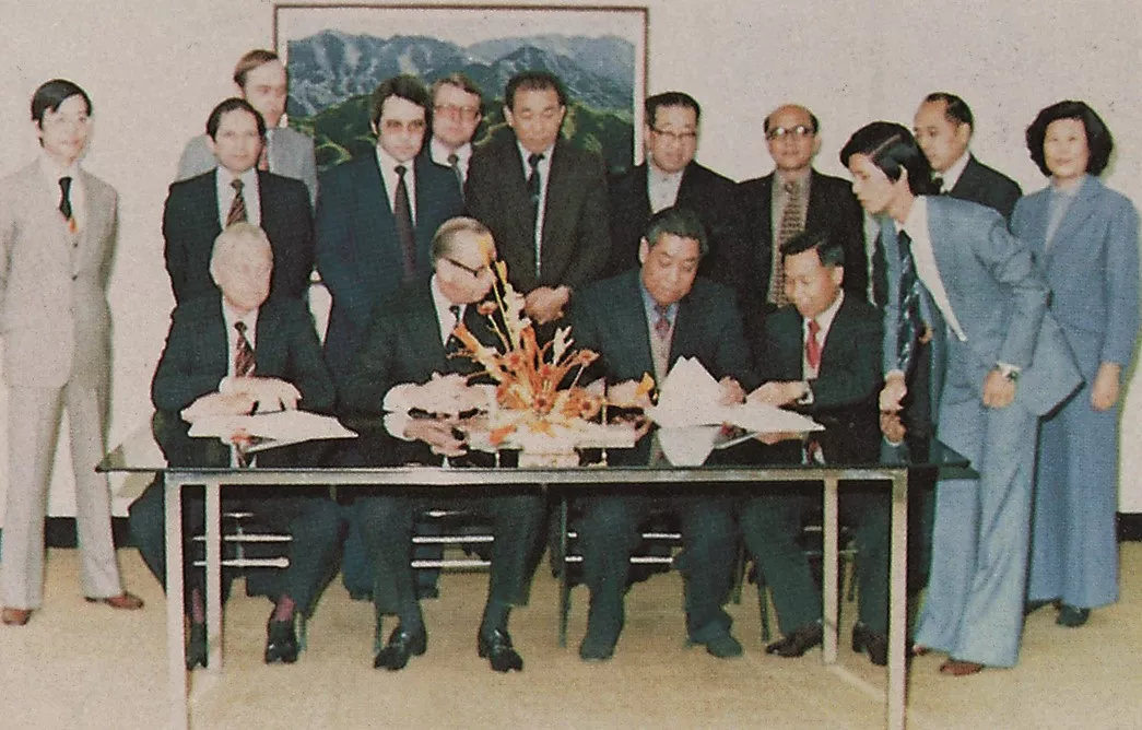 1980年1月14日,在中集首任董事長(zhǎng)袁庚等人的見(jiàn)證下,三方簽訂合資經(jīng)營(yíng)總協(xié)議書(shū)