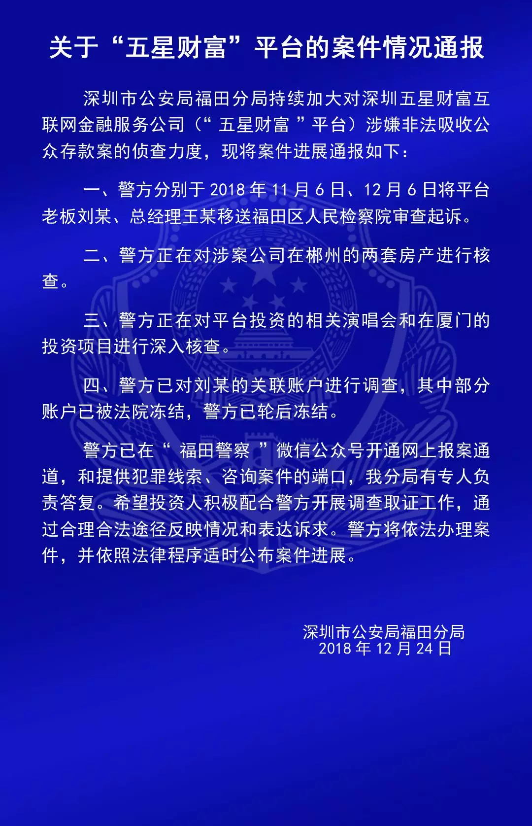 關(guān)于“合拍在線”“壹佰金融”“五星財(cái)富”“眾車在線”“財(cái)富中國(guó)”“小零錢”“錢爸爸”“合時(shí)代”和“前金融”平臺(tái)的案情通報(bào)