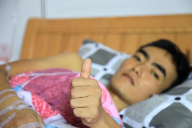 11月24日中午,他坐在輪椅上,讓他的父親向恒金推著他在陽光下散步。"這里的空氣好新鮮。我喜歡這里。"他笑呵呵地對(duì)記者說。