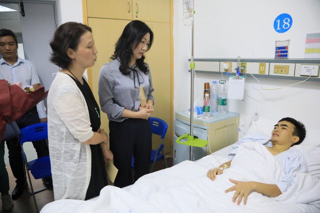 ▲深圳晚報(bào)、深圳市紅十字會(huì)、深圳市關(guān)愛行動(dòng)公益基金會(huì)等單位領(lǐng)導(dǎo)和工作人員看望病中的向金華。