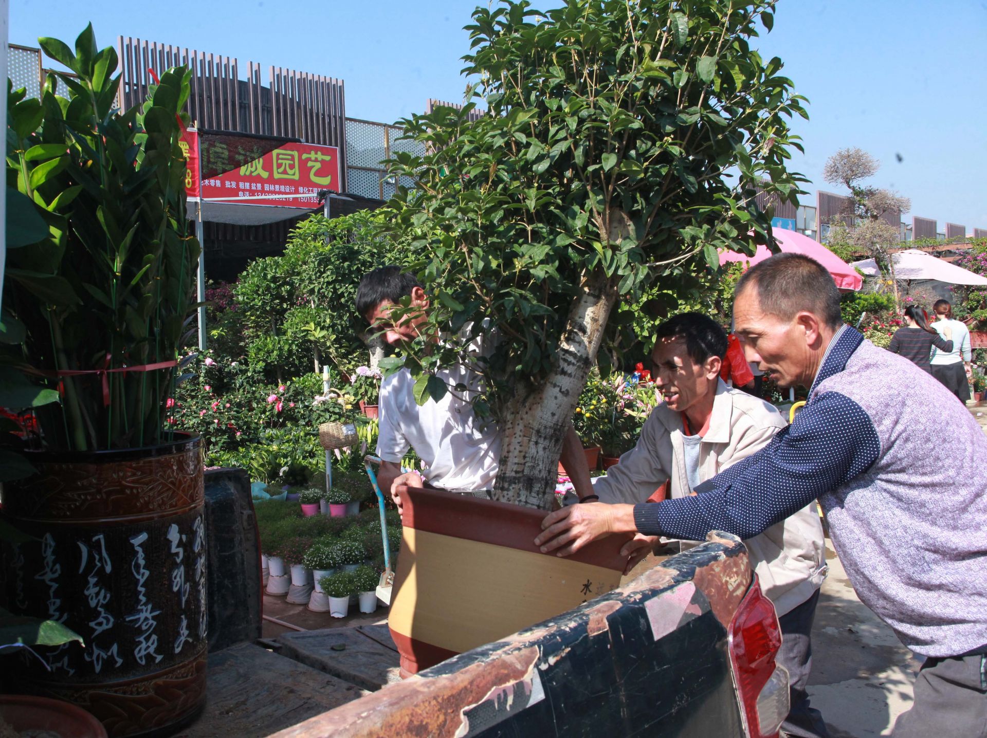 當(dāng)天的龍崗東部花卉世界,到處花團(tuán)錦簇,一盆盆顏色各異的年花喜迎初春,整個(gè)市場(chǎng)充滿了春天蓬勃的氣息?;ㄞr(nóng)們正忙著搬運(yùn)、擺放盆栽,不時(shí)有市民前來(lái)問(wèn)詢(xún),花卉運(yùn)輸一輛接一輛車(chē),絡(luò)繹不絕,往來(lái)的客商頻頻詢(xún)問(wèn)價(jià)格,已經(jīng)搶占先機(jī)的客商興高采烈地精心挑選,包裝搬運(yùn)……