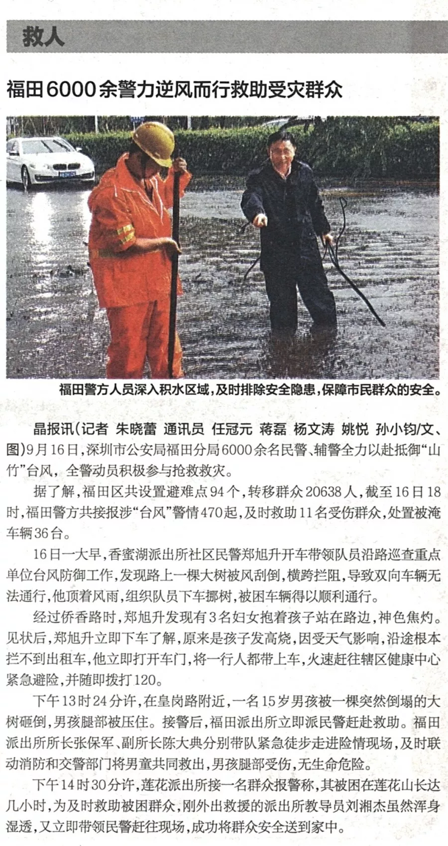 ★★福田警方啟動一級勤務(wù),全力投入防御超強臺風(fēng)“山竹”行動中。福田警方共接報涉“臺風(fēng)”警情470起,及時救助11名受傷群眾,轉(zhuǎn)移群眾20638人,處置被淹車輛36臺,確保了轄區(qū)治安穩(wěn)定。