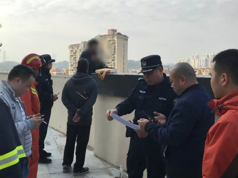 驚險!深圳橫崗一男子抱孩子爬上四樓平臺邊緣,他想干嘛?