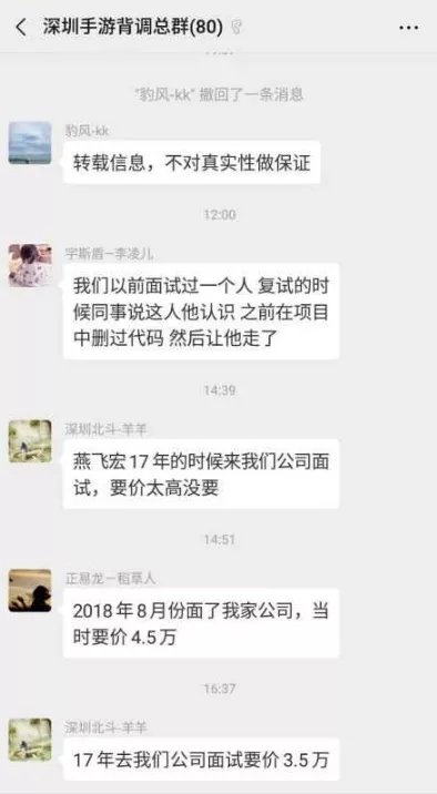 在公告發(fā)出當(dāng)天,燕飛宏的名字迅速在深圳手游圈流傳開(kāi)來(lái)。有從業(yè)者表示,“我在的幾個(gè)游戲行業(yè)招聘群都傳遍了”。在同行交流群里,還有從業(yè)者曝出他過(guò)往的“事跡”。