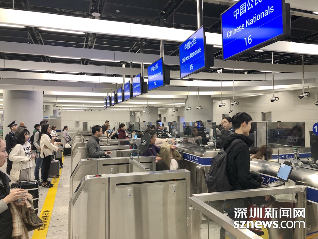 2月2日22:51,西九龍口岸邊檢加開通道查驗最后一班乘客(通訊員 王迪攝)