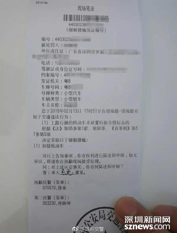 經(jīng)調(diào)查,涉事車輛逾期未檢驗(yàn)(圖片來自深圳交警微博)