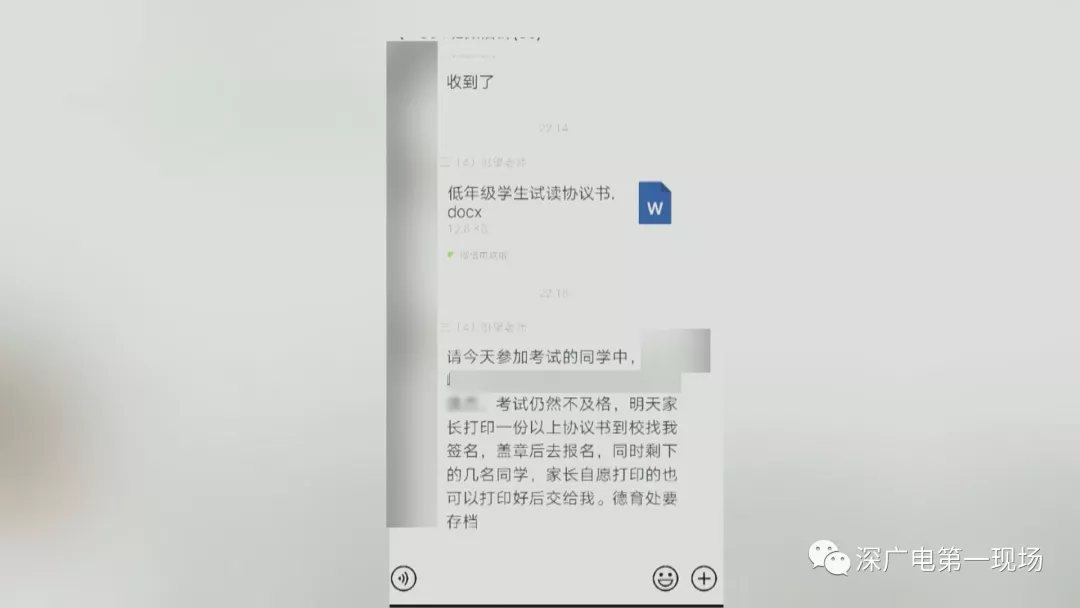 家長反饋不一有家長沒接到通知在學(xué)校財(cái)務(wù)室門口,也有很多家長在此排隊(duì)準(zhǔn)備辦理報(bào)到手續(xù)。對(duì)于《試讀協(xié)議》的情況,有部分班級(jí)的家長表示不知情,沒有收到通知,但也有家長已經(jīng)簽過協(xié)議,并且讓德育處有關(guān)領(lǐng)導(dǎo)簽過字,這才來到報(bào)到的。