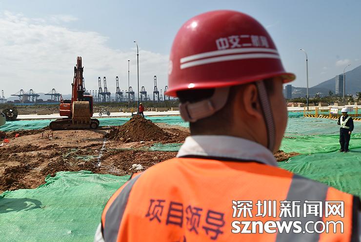 位于鹽田區(qū)的鹽港東立交工程現(xiàn)場(chǎng)施工團(tuán)隊(duì)人員在現(xiàn)場(chǎng)進(jìn)行督導(dǎo)