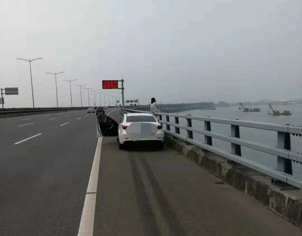 當深圳交警趕到現(xiàn)場時,見到該女子情緒異常激動疑有跳橋輕生之舉,橋下便是滔滔江水,現(xiàn)場情況十分危急。