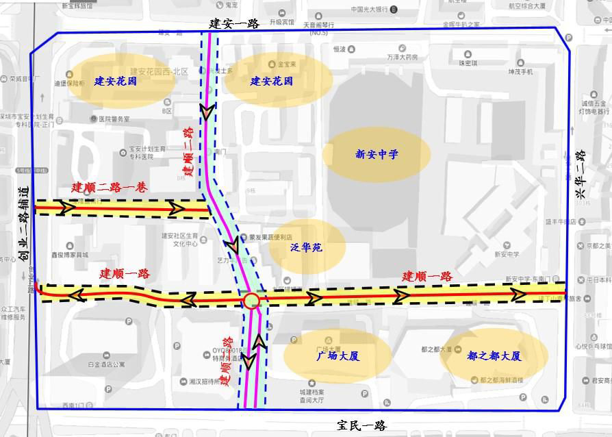寶安交通局計(jì)劃對(duì)新安中學(xué)初中部周邊道路開展交通綜合整治。